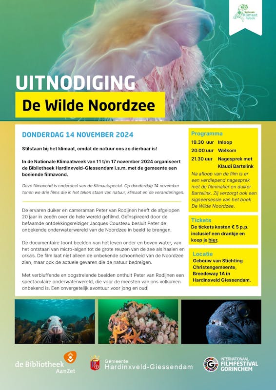 Stilstaan bij het klimaat, omdat de natuur ons zo dierbaar is! In de Nationale Klimaatweek van 11 t/m 17 november 2024 organiseert de Bibliotheek Hardinxveld-Giessendam i.s.m. met de gemeente een boeiende filmavond. Deze filmavond is onderdeel van de Klimaatspecial. Op donderdag 14 november tonen we drie films die in het teken staan van natuur, klimaat en de veranderingen.