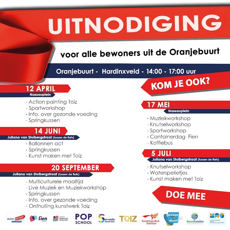 Komen jullie ook muziek maken? Zaterdag zullen wij een leuke workshop geven tijdens de Meet en Greets op het Nassauplein waar ook heel veel leuke andere activiteiten te doen zijn van 14:00 uur - 17:00 uur. Wij zullen er van 14:30 - 15:30 uur zijn.