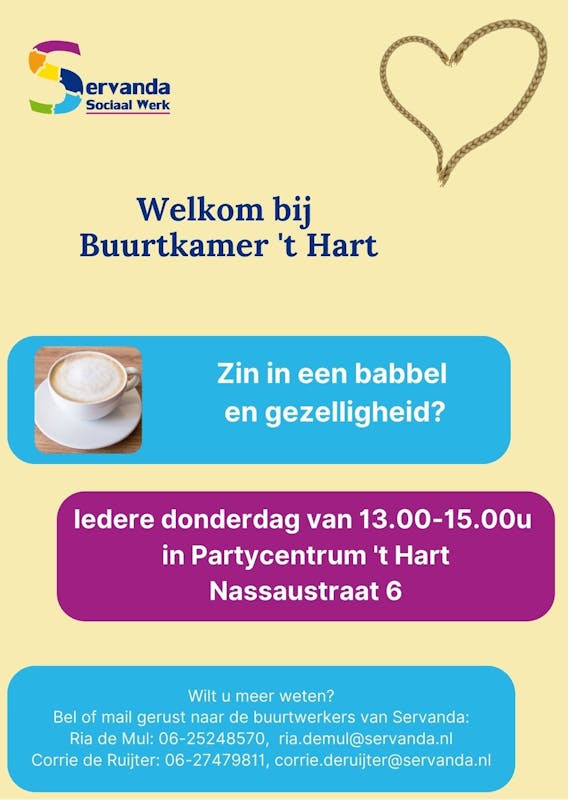 Op donderdag 14 november is er in 't Hart geen Buurtkamer.