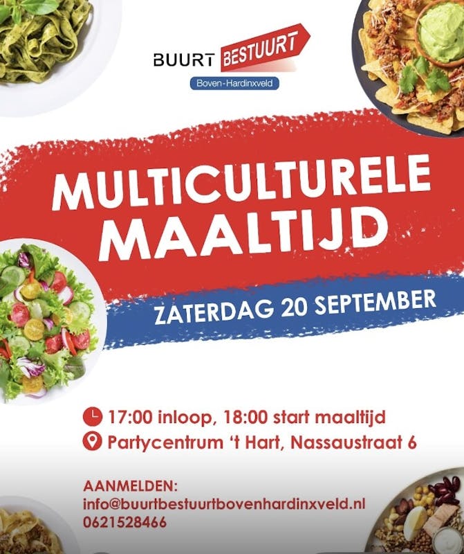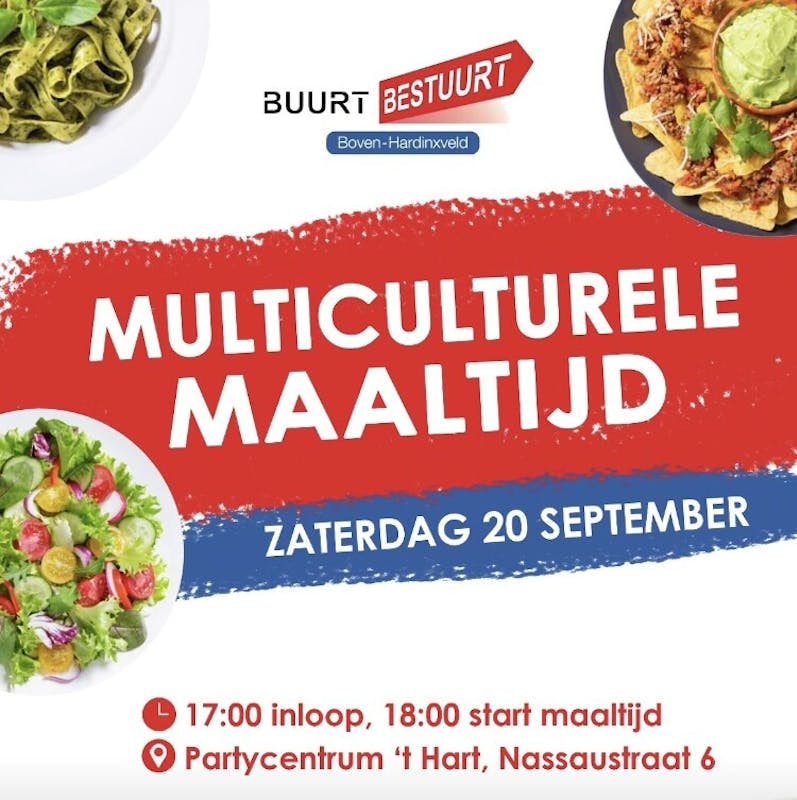 Boven-Hardinxveld is rijk aan culturen, verhalen en tradities. Om die diversiteit samen te vieren, organiseert Buurt Bestuurt Boven-Hardinxveld binnenkort een multiculturele maaltijd! Dit wordt een feestelijke en verbindende gelegenheid waar bewoners elkaar kunnen ontmoeten en samen elkaars gerechten en gewoontes kunnen leren kennen.