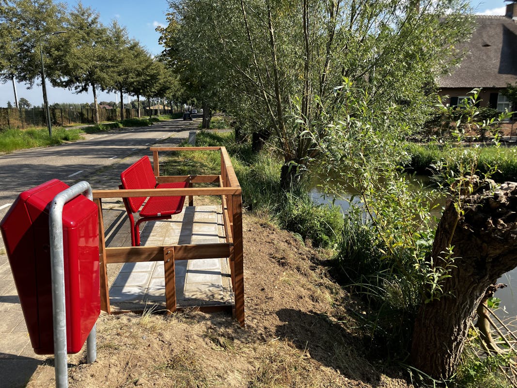 Ter hoogte van Parallelweg 123 is door de gemeente een idyllisch rustpunt gerealiseerd. Aan het voetpad is een bankje geplaatst dat uitkijkt op het polderlandschap. Loop er eens heen en geniet van het uitzicht.