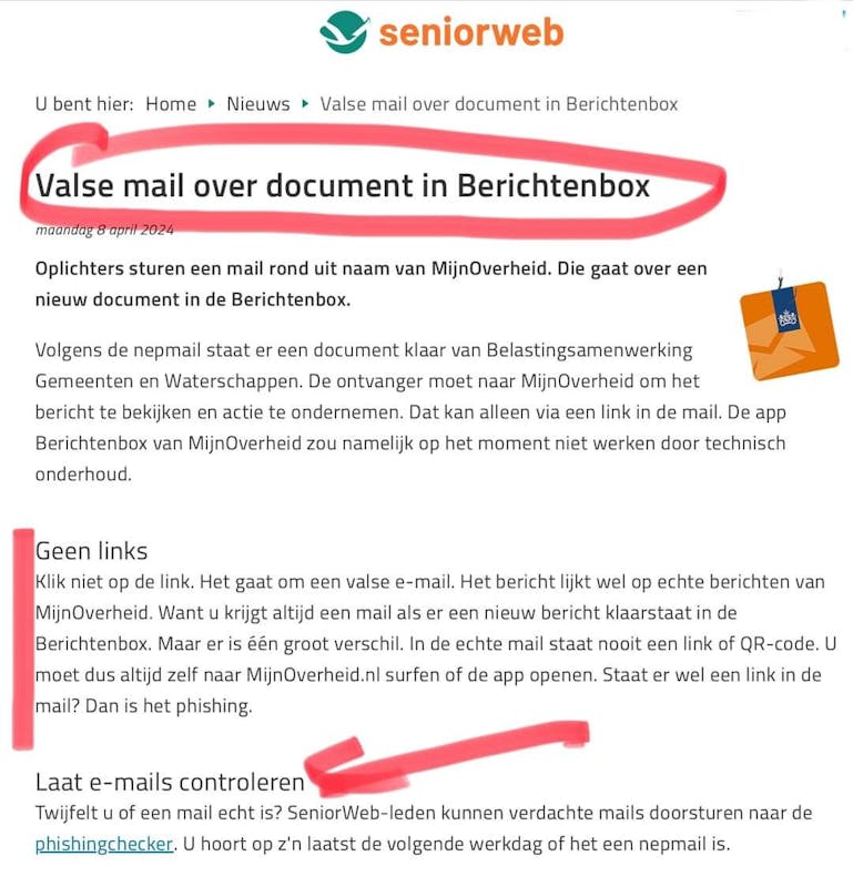 Er gaat een mail rond dat op een link geklikt moet worden om Mijn Overheid berichtenbox te kunnen bereiken. Volgens deze mail zou mij berichtenbox niet werken. Doe dit NIET, dit is een nepmail.