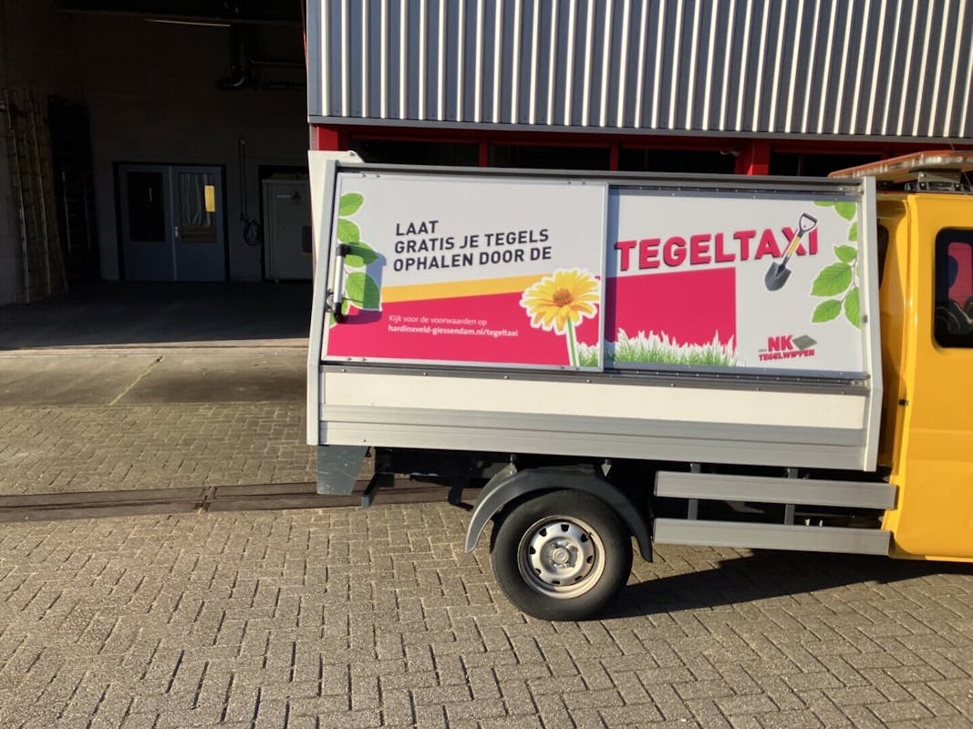 Tijdens de campagne periode van 21 maart tot en met 31 oktober halen we gratis uw gewipte tegels op. Dit doen we met onze Tegeltaxi. Deze rijdt op dinsdag 23 april, 4 juni, 20 augustus en 22 oktober.