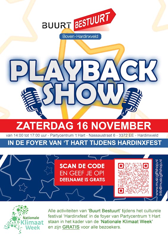 OPGEVEN VOOR DE PLAYBACKSHOW KAN T/M WOENSDAG 13 NOVEMBER! https://www.musicgiftshop.nl/de-popschool/hardinxfest of bel of app naar 06-21528466 (Rebecca Loeve)