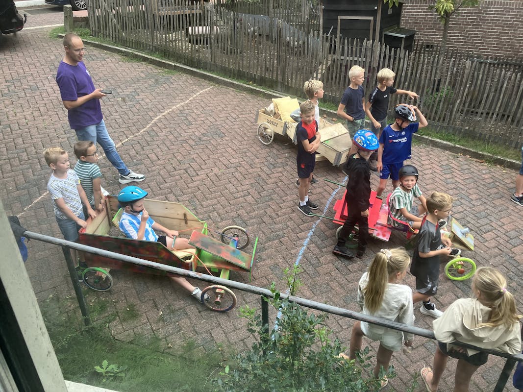Tijdens de kinderweek van de hervormde gemeente Boven-Hardinxveld, werd dit jaar een zeepkistenrace georganiseerd. Er was een heus circuit uitgezet vanaf de kerkstoep. Er had zich een flink aantal “Max Verstappens” ingeschreven die het lef hadden om aan de race richting de pastorietuin mee te doen. In de dagen daarvoor hadden de coureurs onder leiding van vrijwilligers, hun zeepkist zelf in elkaar geknutseld. Hieronder vind je een paar foto’s van het leuke en zeer geslaagde evenement.