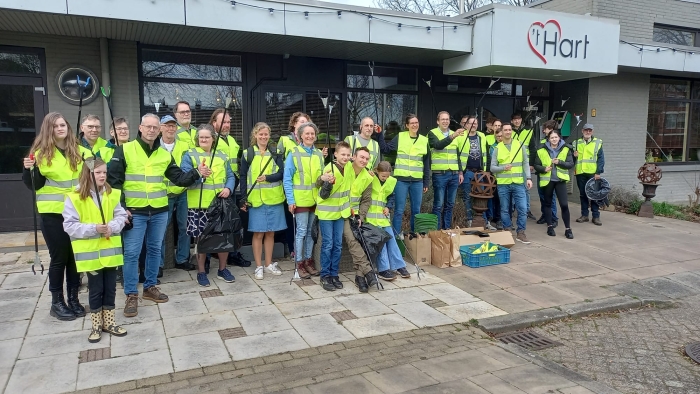 Janneke de Bruin van De Hagi-Afvalprikkers krijgt kort het woord om over De Hagi-Afvalprikkers te vertellen en nodigt mensen uit zich aan te sluiten via de app. Dan krijgen de deelnemers buiten een hesje, een knijpstok en alle andere benodigdheden. Na de groepsfoto, laat Jan de locaties zien waar deze ochtend geraapt gaat worden. Daarna gaan de groepjes met een kaart, prikstok en vuilniszak op pad. Rond 11.30 uur zijn de deelnemers weer terug bij ’t Hart. Wethouder Arjan Meerkerk deed ook mee en bedankt de deelnemers na afloop. Met een kop soep wordt de Landelijke Opschoondag 2025 gezellig afgesloten. Een van de deelnemers is zo enthousiast dat hij het zwerfafvalrapen ‘verslavend’ noemt.